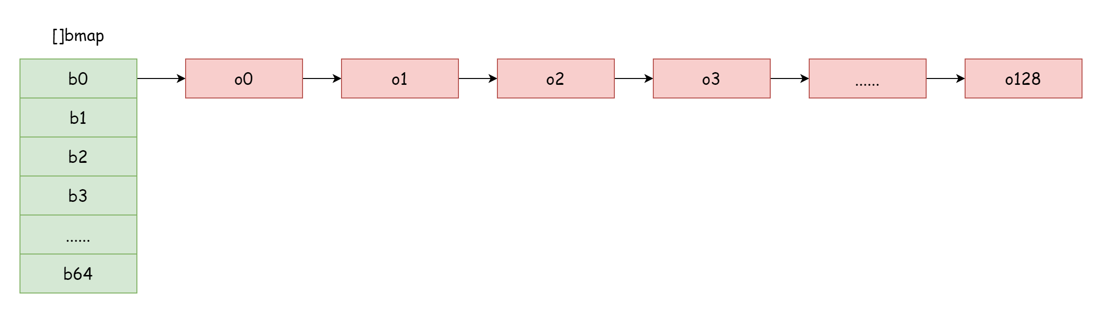 ,存放着 hmap 中的溢出桶,溢出桶指的是就是当前桶已经满了,创建新的桶来存放元素,新创建的桶就是溢出桶。